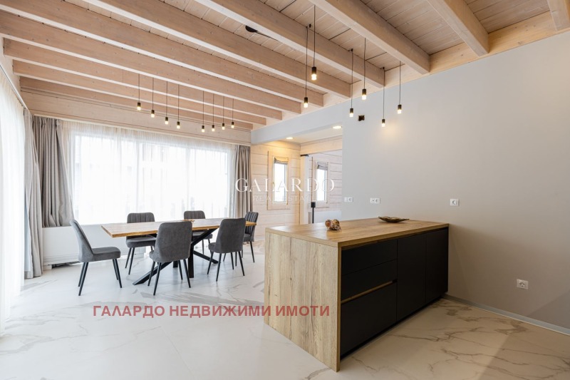 Къщата е обзаведена с луксозни италиански мебели, а кухнята е напълно оборудвана с всички необходими ел.уреди на марката Bosch.