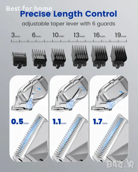 ИДЕАЛНА ЗА ПРЕДВАРЯНЕ И СМЕСВАНЕ: Машинките за подстригване GLAKER за мъже разполагат с регулируем лост за заостряне и 6 предпазителя за приставки с различни размери (1/8, 1/4, 3/8, 1/2, 5/8, 3/4), които помагат за плъзгане на машинката през най-гъстите прически и я правят идеална за създаване на страхотно кратко подстригване.