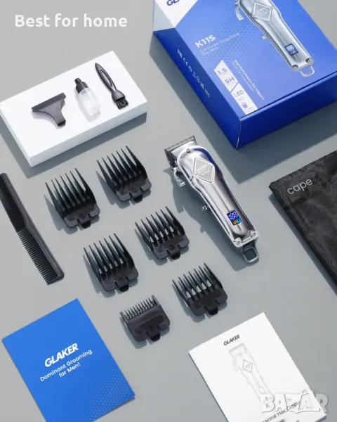 СТИЛЕН МЕТАЛЕН КОРПУС: Машинките за подстригване GLAKER са с класически корпус от алуминиева сплав с изпъкнали петна на гърба, което ви осигурява здрав захват и удобно захващане.