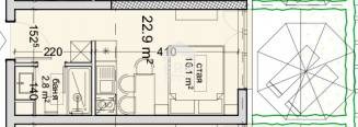 студио с площ 26,44 кв.м. /застроена площ 22,90 кв.м./ в строеж на жилищна сграда във варненския квартал 'Владислав Варненчик', в близост до бул. Цар Освободител. Имотът е разположен на втори етаж в десети етажна сграда, състояща се от два входа. Разпределението на имота: входно преддверие - 3,5 кв.м., дневна с обособена кухненска част - 16,1 кв.м. и баня - 2,8 кв.м. Виж раздел: снимки, секция План.