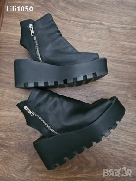 Отворени кожени боти в черен цвят : EXCLUSIVE