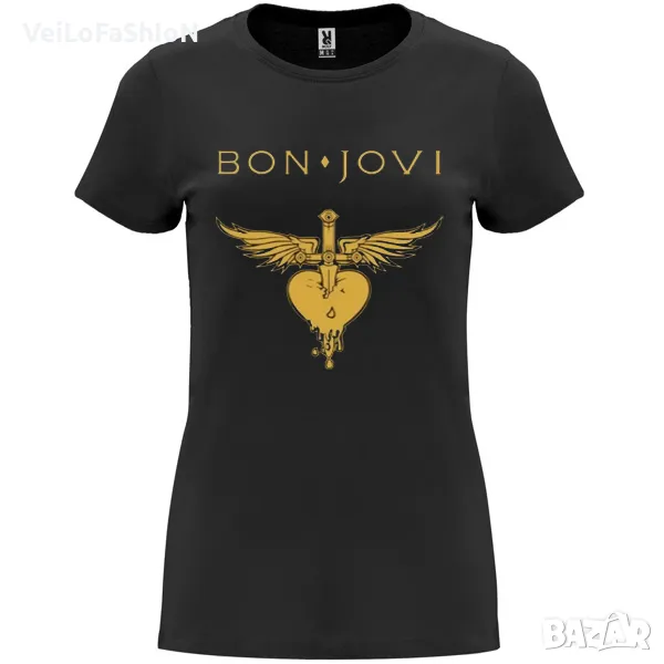 Новa дамска тениска в черен цвят с щампа на музикалната група