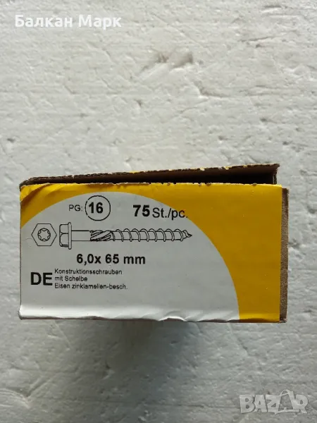 Винт, винтове дърво 6x65, шестостенна глава,TORX,шайба,връх 17, цинк-ламелно покр.75бр