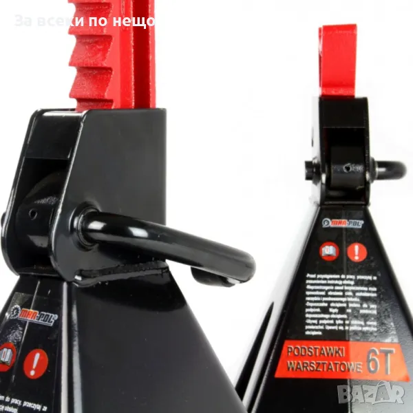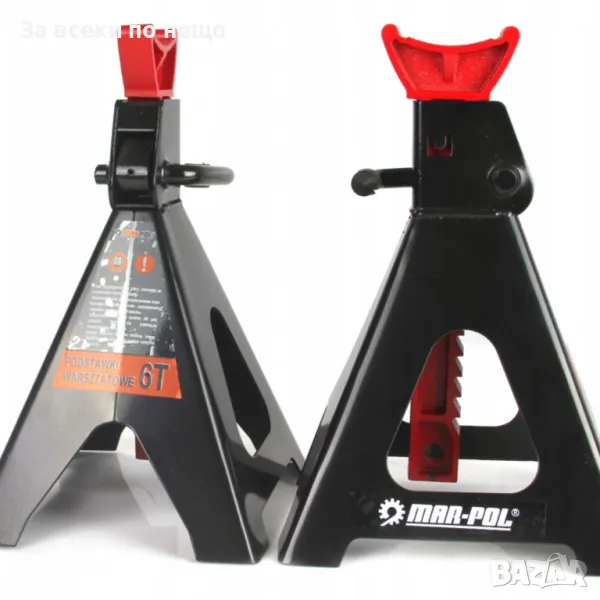 Стойките осигуряват сигурна и стабилна опора на автомобила върху специално профилирани седла. Заключващият лост ефективно закрепва опорните колони в избраната позиция. Изработени са от здрава стомана и се характеризират със здрава, заварена конструкция. Краката на криковете са със заварени широки крака, стабилизиращи опорите при работа под товар.