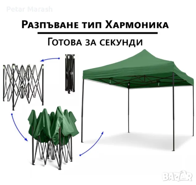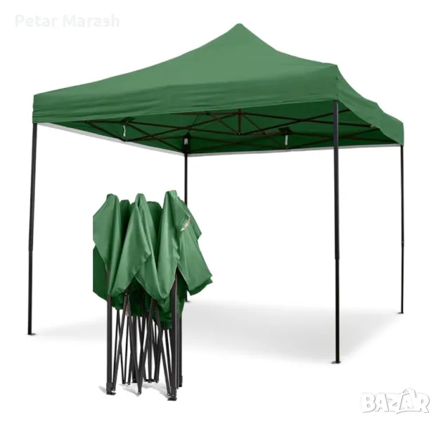 Зелена Сгъваема Градинска Шатра 3×3м тип Хармоника – стабилна, водоустойчива и лесна за разпъване