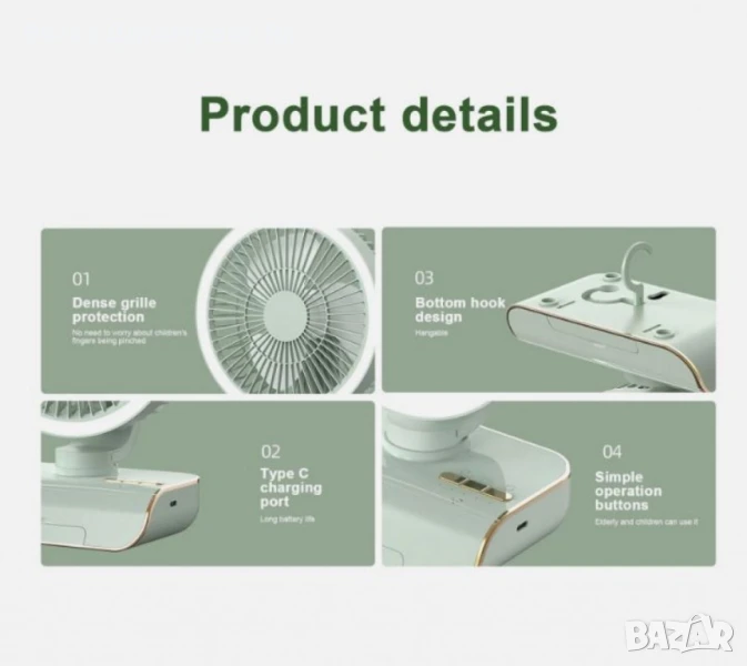Вентилатор. Зареждане с USB Type-C.