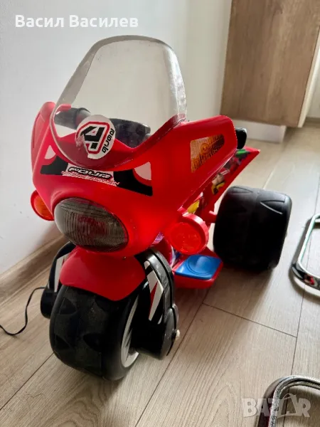 Проектиран така, че деца между 1 и 3 години да могат да се научат да управляват своето електрическо превозно средство по удобен и адаптиран начин. Включва зарядно устройство и батерия 6V. Неговите функции и детайли имитират външния вид на четириколки за възрастни, а ергономичният му дизайн улеснява пространственото и двигателно развитие на най-малките. Благодарение на широките пластмасови колела, управлението на този 3-колесен мотоциклет е напълно удобно и безопасно. Управлява се благодарение на педала на газта, разположен на дясната поставка за крака. Достига максимална скорост от 2.5 км/ч. Произведен е с най-добрите качества, предоставени от Injusa, и отговаря на изискванията за безопасност, изисквани от ЕС. Размерите на това електрическо превозно средство са: 61 x 52 x 49.5 см, височината на седалката (от земята) е 27 см, а височината на кормилото е 48 см от земята.