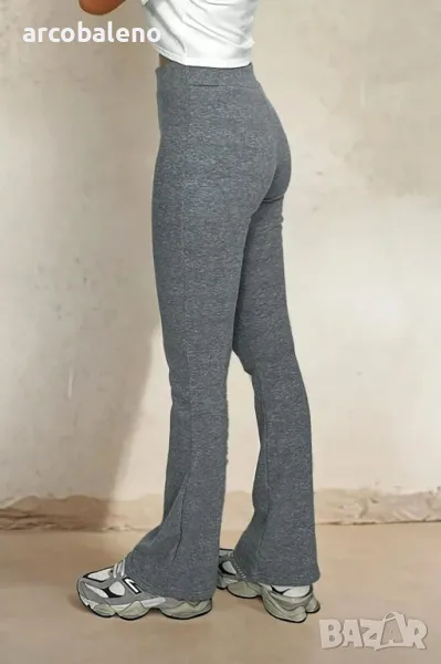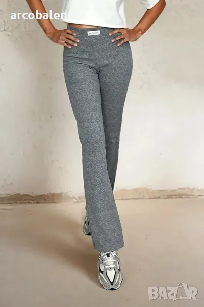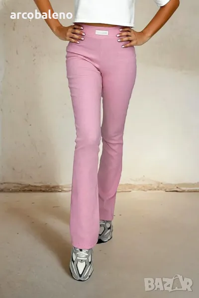 Оребрен панталон с широки крачоли в стил камбан. Златна нашивка като фин детайл. Модел, който оптически удължава краката и добавя стил към всеки стайлинг.