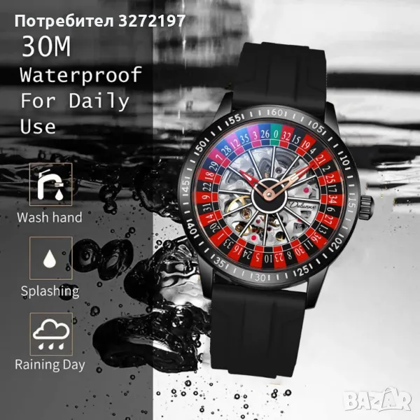 Дизайнерски Автоматичен, механичен часовник Рулетка с въртящ се циферблат,водоустойчив