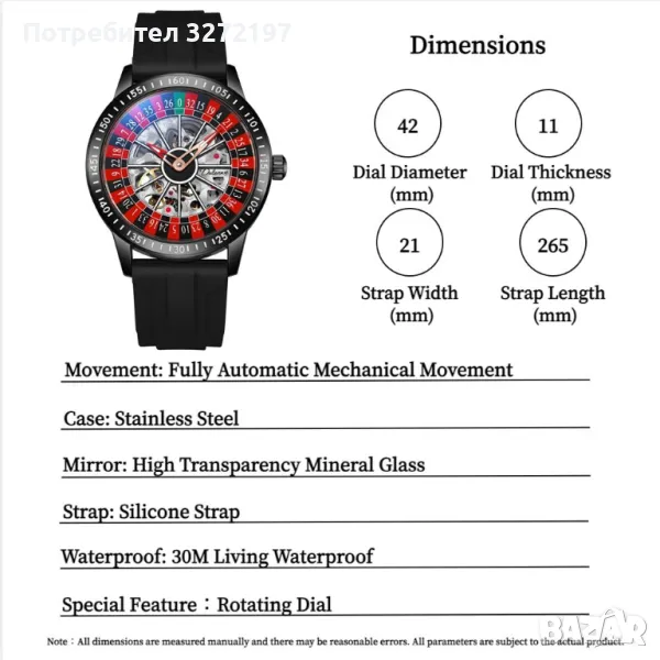 без батерии, поддържа самонавиване и ръчно навиване. Моля, навийте го