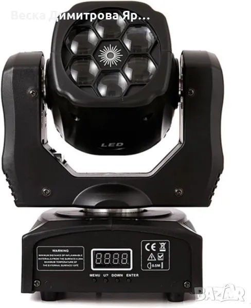 Преносими LED сценични светлини с движеща се глава и управление (6x12W + лазер)