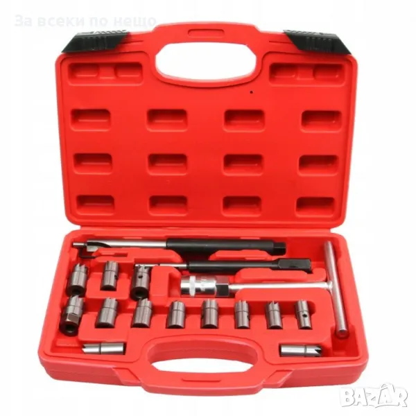 Предлага се с 13 различни фрези, които стават за повечето дизелови автомобили. T-образният ключ в комплекта е от хром ванадий.