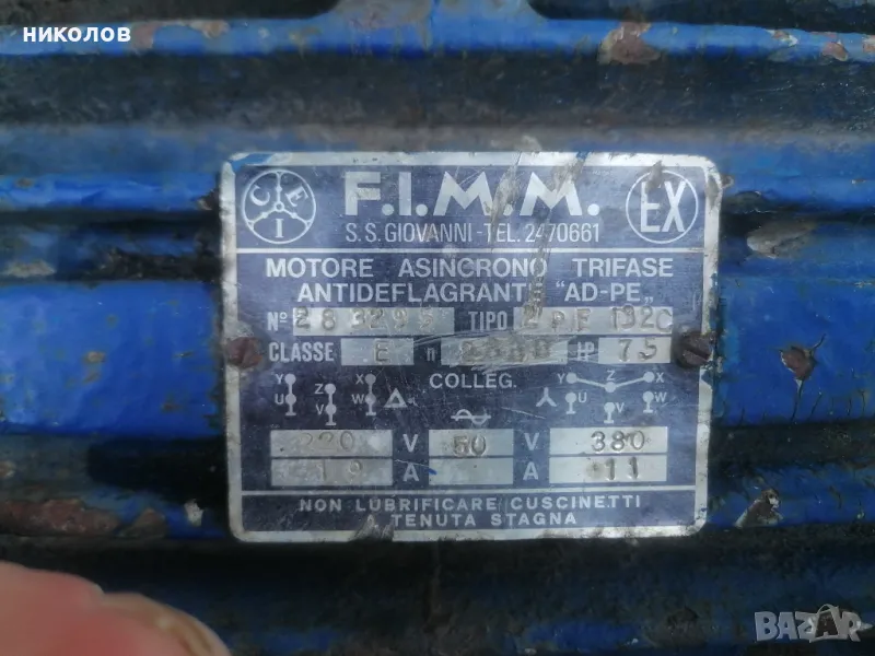 Помпа за вода двигателят е трифазен 7 киловата и половина характеристиките на помпата се виждат на табелката
