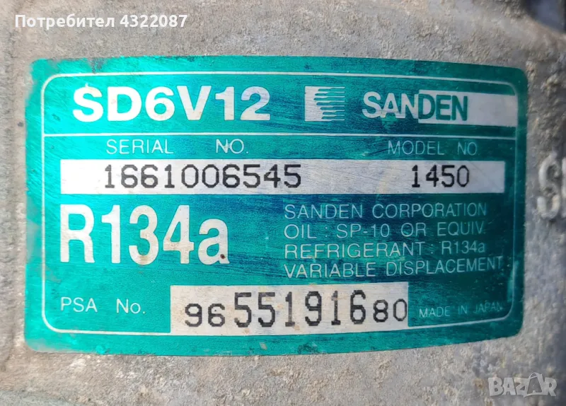 Компресор климатик от Пежо 1007 / Peugeot 1007 1.6I 16V 110к.с NFU → Обява 50367966