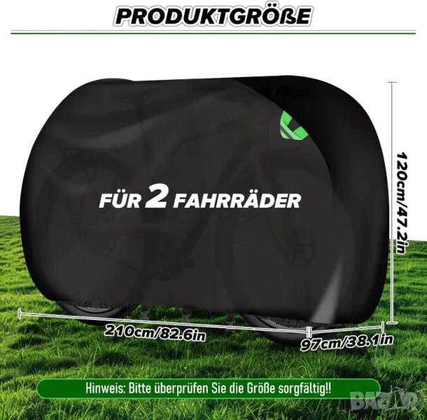 Висок капацитет: С размери 210 cm x 97 cm x 120 cm (Д x Ш x В), това външно хранилище за велосипеди е предназначено за поставяне на до 2 велосипеда и осигурява цялостна защита за съхранение на закрито и открито, подходящо за планински велосипеди, шосейни велосипеди и детски велосипеди. Електрически велосипеди, хибридни велосипеди, дамски велосипеди с кошница и др. Уверете се, че сте поставили велосипедите един до друг или обърнати, за да осигурите по-добро покритие.
