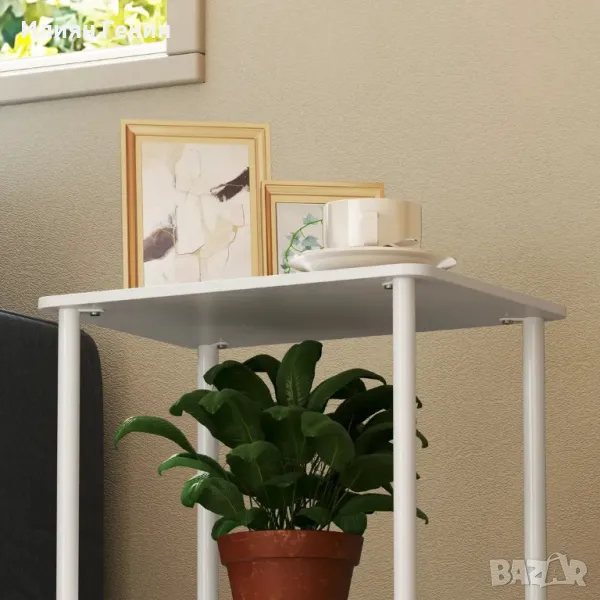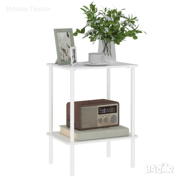 HOMCOM Модерна странична маса на 2 нива с отделение за съхранение и метална рамка за хол, спалня, бяла - 50.00лв.