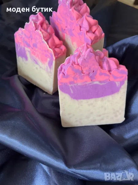 Сапунът е украсен с пищни розово-лилави пикове, които приличат на захарна глазура, сътворена от феята на нощта. Излъчва мек, мистичен блясък, който казва: „Аз съм тук, за да бъда звездата в твоята баня.“