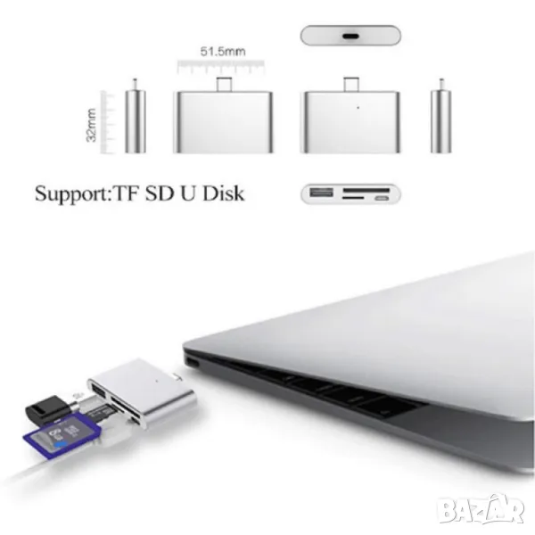 Мултифункционален адаптер и кардрийдър с фукнция за зареждане на телефони CA94 → Обява 50369592