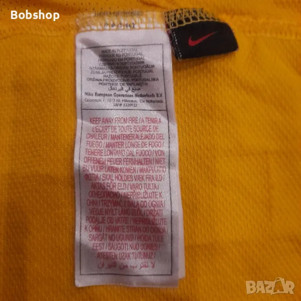 Отлично състояние, оригинален продукт, размер по етикет- S - nike fit, предна част на дрехата 73% найлон и 27% полиестер, гръбна част на дрехата и ръкави 100% полиестер, яка 90% полиестер и 10% еластан, машиннобродирано лого и щампа на лицевата част, щампа на гърбът, произведена в Португалия.