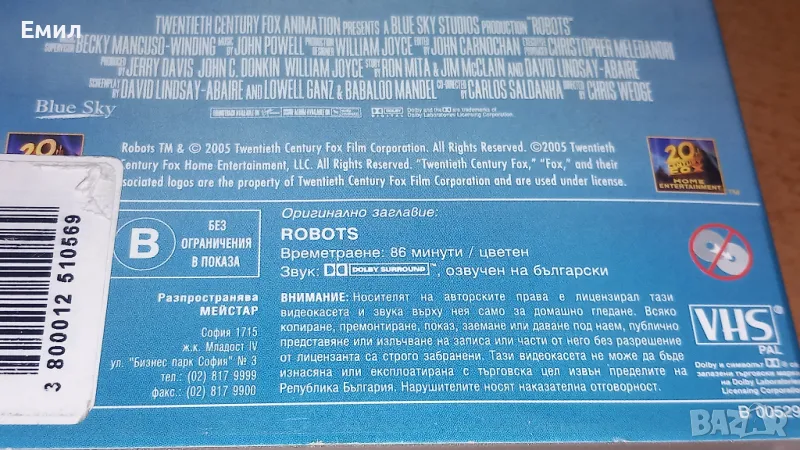 Видеокасета -" Роботи" → Обява 50369921