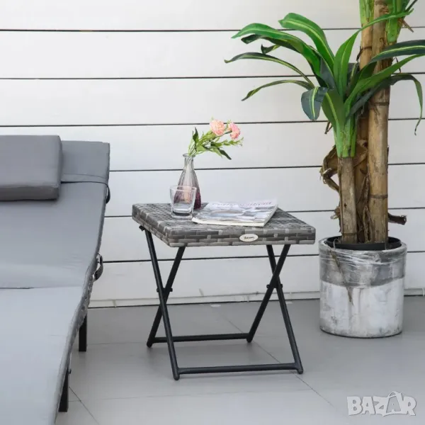 Странична маса Outsunny от полиратан, сгъваема масичка за кафе 40x40x40см сива - 50.00лв.