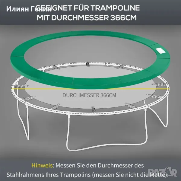 ✔ подходящ за всички видове батути (независимо от производителя) с диаметър 366 см