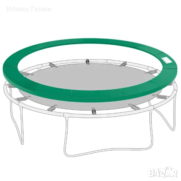 Голям капак за ръбове: В зелен цвят, предлага най-добрата защита за кръгли батути с диаметър Ø366 см.