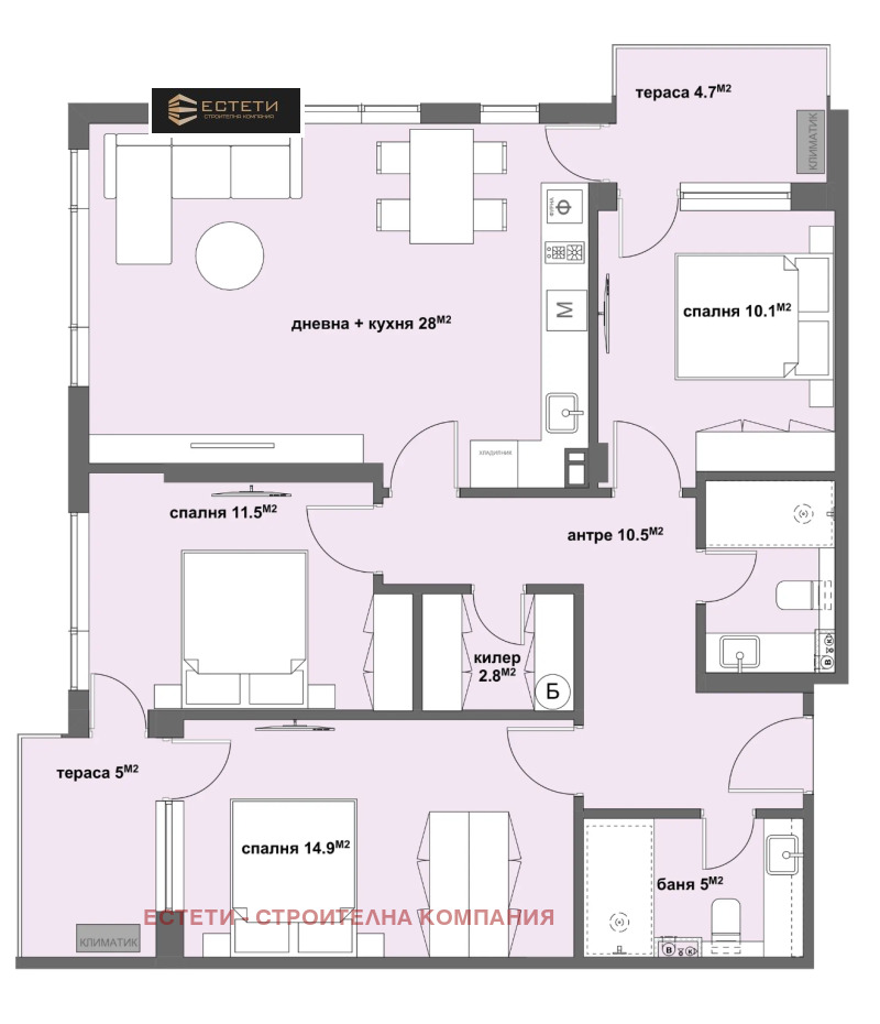 🏠❤️ Многостаен апартамент, състоящ се от: антре, дневна с кухня, 3 спални, килер, 2 бани с тоалетна, 2 тераси. Квадратура - 131,72 кв.м.