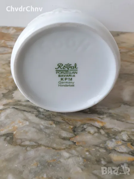Всяка вазичка е от плътен/тежък порцелан, релефна (с гланц), маркировка/печат отдолу на Royal Porzellan Bavaria KPM и че e ръчно направена.
