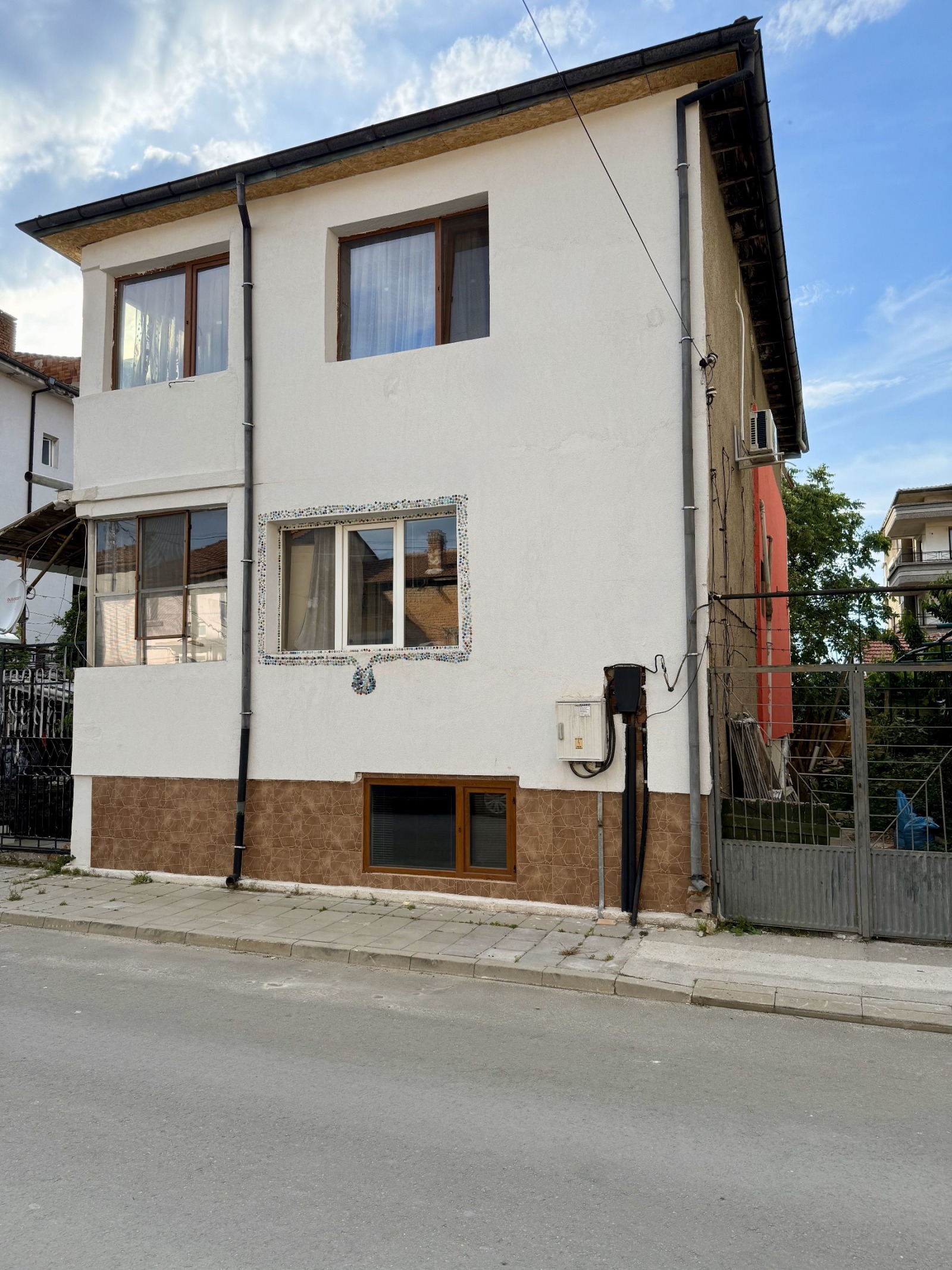Сградата се състои от три етажа (два жилищни етажа и партер), всеки от които с площ от 71м2, разпределени в хол, кухня и спалня (три отделни помещения) и санитарен възел, свързани са с вътрешно стълбище. Предлага се цялостно санирана с 5 см. външна топлоизолация и подменена ПВЦ дограма. Жилищата са без съвременни подобрения и се нуждаят от ремонт.