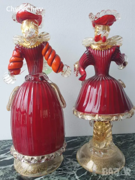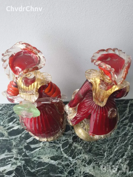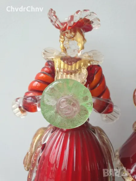 чифт2бр Murano стъкло статуетки 21см/Мурано стари венециански стъклени фигури/танцьори-злато