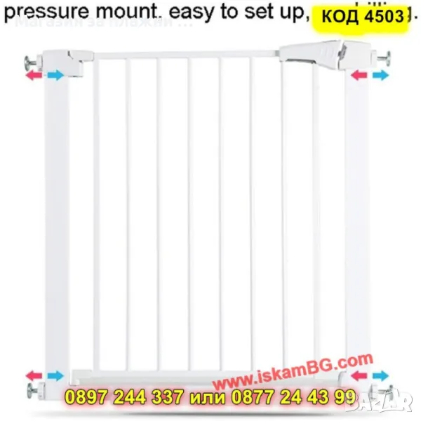 ⚙️ Разширителна система без пробиване – лесен монтаж чрез 4 обтегача, които стабилно се захващат за касата на вратата.