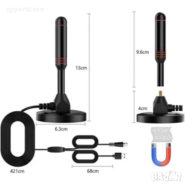 Антена за телевизор с вграден усилвател Digital One SP01074 , 511832, HDTV, стайна антена, магнитна, 5м кабел