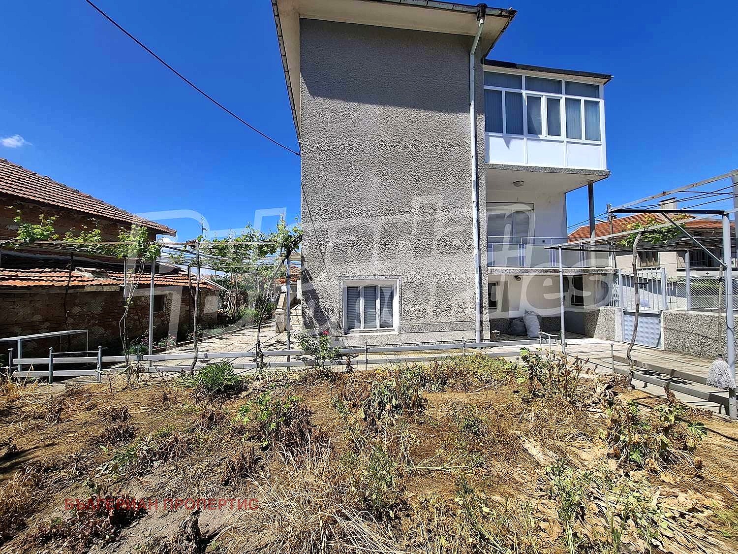 Къщата (РЗП - 240 кв.м.) е масивна, със здрави бетонни плочи и до всеки етаж се достъпва по вътрешно стълбище. Разпределението е следното: