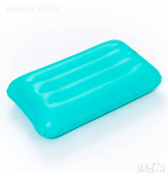 Надуваема възглавница в тюркоазен цвят с водоустойчива долна страна, кадифен горен слой и специална конструкция, която ви предлага комфорт. За употреба като възглавница или като протектор за седалка. Подходящ за употреба на закрито и открито. Включена е ремонтна лепенка.
