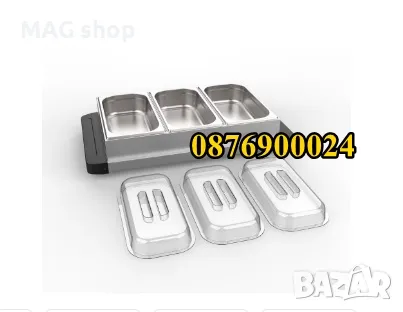 3 отделения за топъл бюфет разполага с три отделни контейнери от неръждаема стомана, включително капак. Бен мари / Бенмари