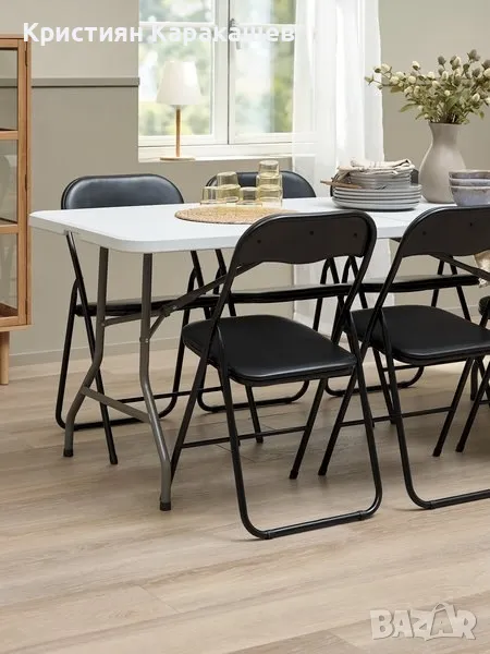 Материал Рамка: Стомана, Плот на маса: Полиетилен, Крака: Стомана