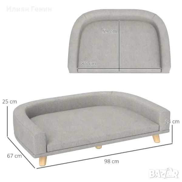 Диван за кучета PawHut за големи кучета до 30 кг, подплатени крака от борова дървесина, 98 x 67 x 25 см, сив - 120.00лв.
