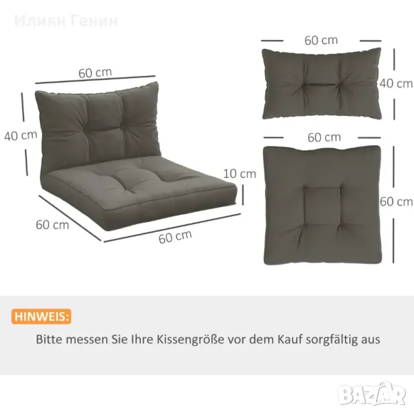 ✔ 2 части: възглавница за седалка и възглавница за облегалка. Подходящо за градински мебели