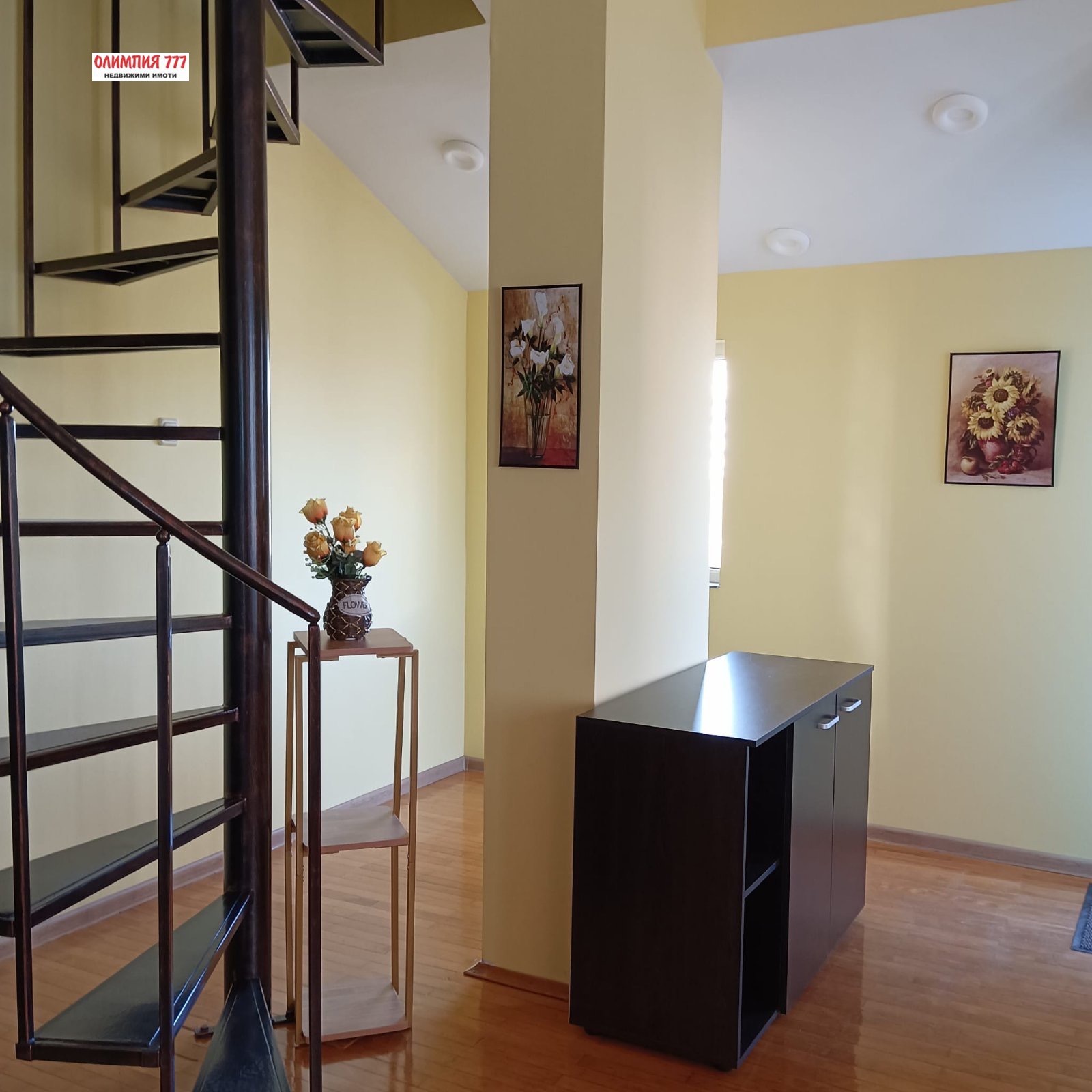 Апартаментът е на две нива и се намира в тухлена сграда в центъра на града. Състои се от антре, трапезария с кухненски бокс, две спални, две бани с тоалетни, килер, две тераси. Продава се обзаведен. Отоплението е на ТЕЦ. Външна и вътрешна изолация. За повече информация на посочения телефон