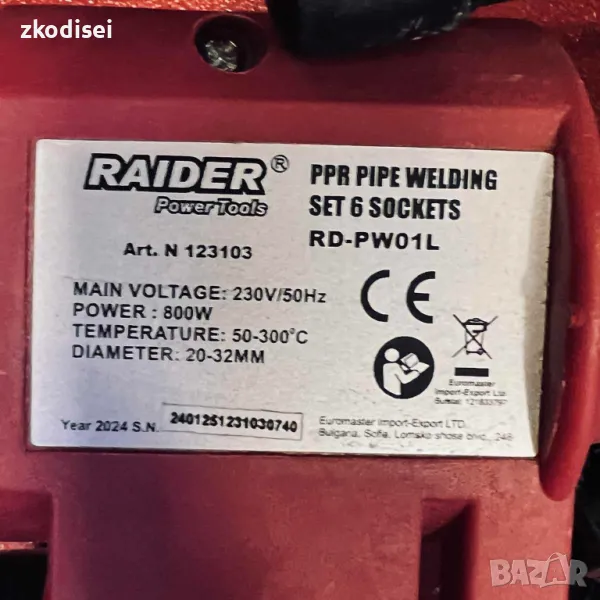 Лепачка за тръби RAIDER RD-PW01L, снимка 1 - Други инструменти - 50377343 Лепачка за тръби RAIDER RD-PW01L, снимка 2 - Други инструменти - 50377343 1/2