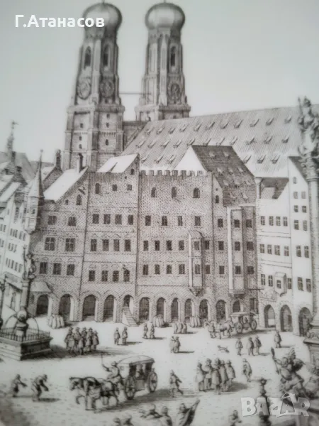 Старинна декоративна порцеланова чиния,красиво графично изображение - Мюнхен,с възможност за окачване на стената и диаметър 20 см.