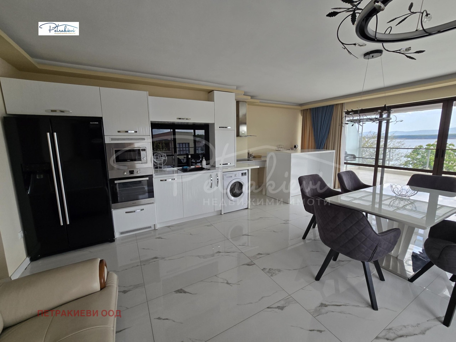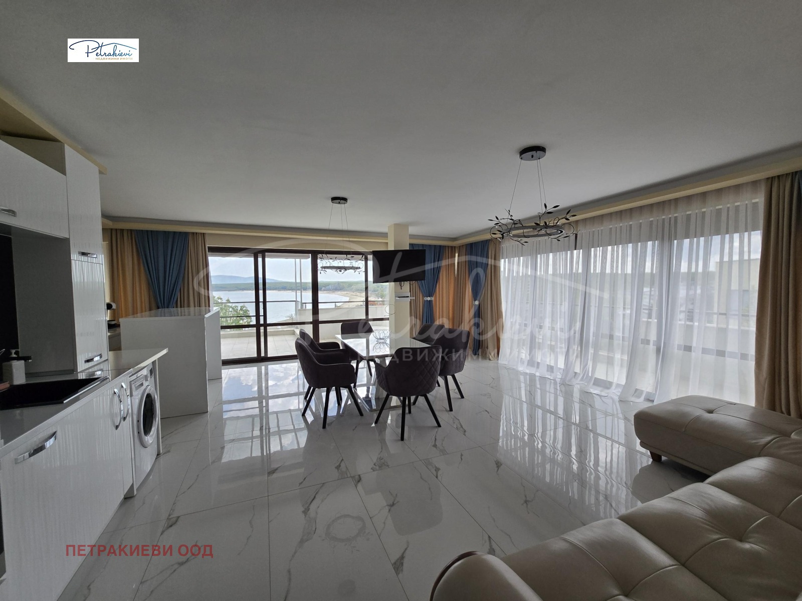 Петракиеви недвижими имоти представя просторен тристаен, луксозно обзаведен апартамент с фронтална морска панорама, разположен на първа линия пред Южния плаж в Приморско в бутикови комплекс. Само на 50 м от широка, пясъчна, златиста, плажна ивица, тук ще откриете безкрайни прелести на морския бряг награден със Син флаг. На 500 м от аквапарк и недалеч от центъра на града, комплексът съчетава лукс, комфорт и спокойствие, като предлага панорамни гледки към морето и удобства на най-високо ниво.