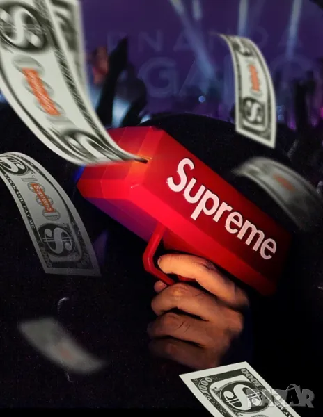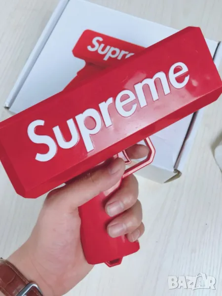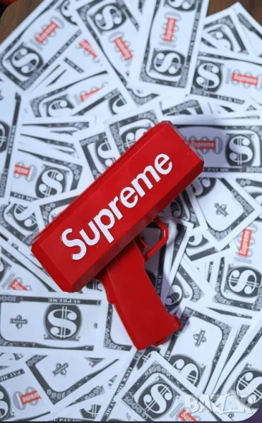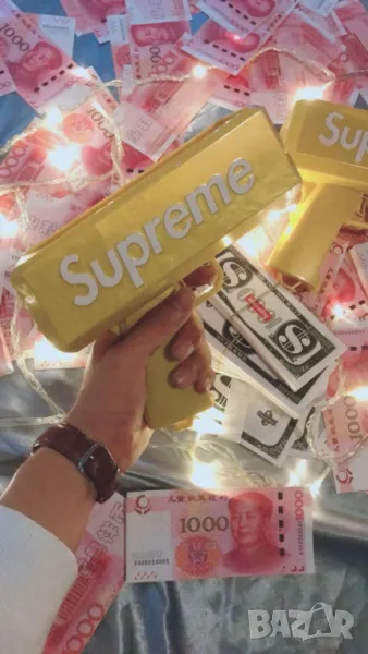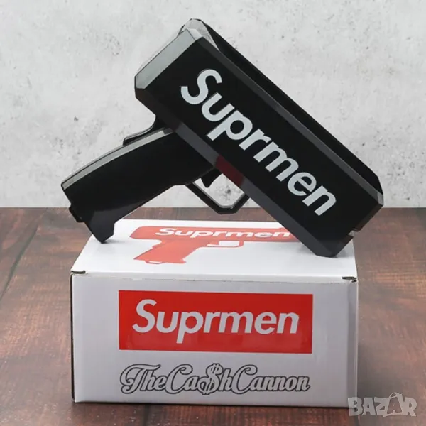 Пистолет за пари / Материал на изработка- пластмаса; Захранване- батерия 9V; Цвят - червен; Тегло-450гр; Размери на пистолета- 19*16.5*8см; Вместимост- 40 банкноти.