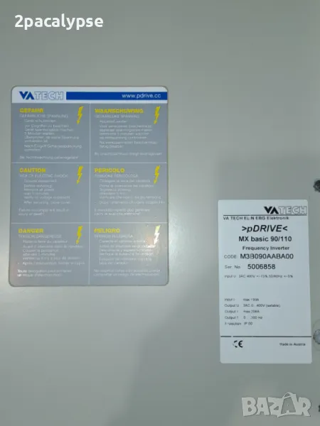 Индустриален честотен регулатор (инвертор) модел pDrive MXbasic 90/110 (подразделение на Schneider Electric), предназначен за управление на асинхронни електродвигатели. Подходящ за приложения в автоматизацията, транспортни ленти, вентилатори, помпи, електродвигатели на тежки машини, екструдерни линии, сушилни, главни задвижвания и други индустриални системи.