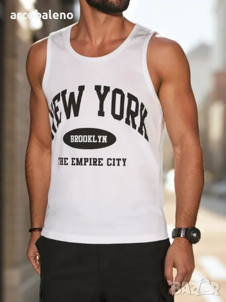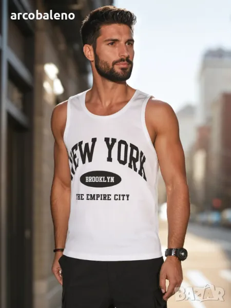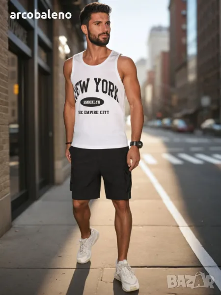 Мъжка тениска без ръкави с голям принт "Ню Йорк" е чудесен вариант за феновете на градския стил и ежедневния стил. Моделът се отличава с удобна, свободна кройка, която осигурява пълен комфорт в по-топлите дни. Висококачественият материал позволява на кожата да диша, което прави тениската подходяща както за разходка из града, така и за почивка.