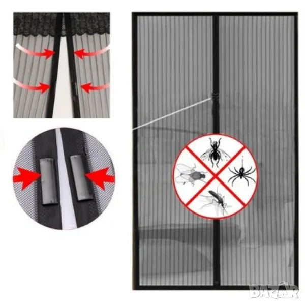 Мрежа против насекоми M a g i c M e s h с магнитно закопчаване /Размери: 100 x 190 см / Цветове: черен