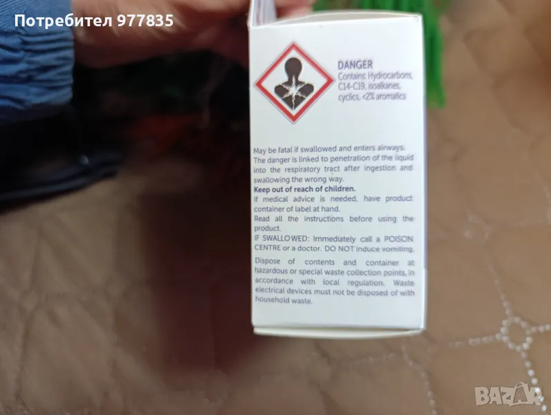 При поглъщане незабавно потърсете лекарски съвет и покажете на лекаря опаковката или етикета на продукта.