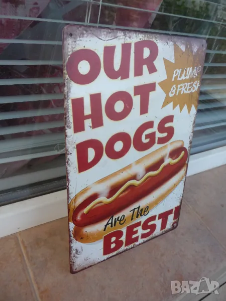 Метална ламаринена табела - Our hot dog are the best..