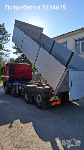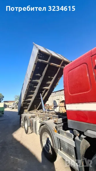 Самосвал 4 оси със свалящ се кран в задната част. Нов внос - обслужен масла и филтри. Тара на камиона с крана 16100кг , без крана 12300кг. Ресьори на предните оси и възд. възгл. на задните, завиващо буге. Технически допустимо тегло 35т! ! !